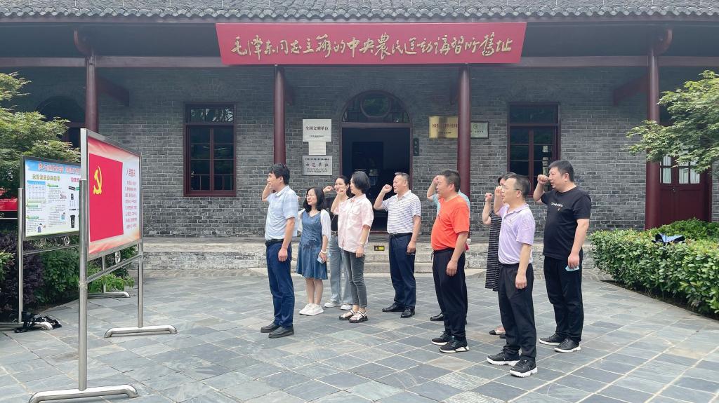 党员们首先来到中央农民运动讲习所旧址纪念馆,在纪念馆门口,全体党员在直属支部书记余伟的带领下重温入党誓词。随后大家参观了农讲所大教室、员工宿舍、食堂等,并认真观看“探索与奠基——武昌中央农民运动讲习所历史陈列”。