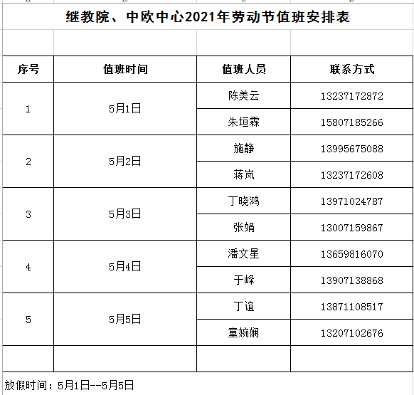 继教院、中欧中心2021年劳动节值班安排表