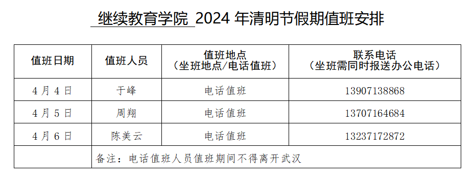 2024年清明节假期值班安排