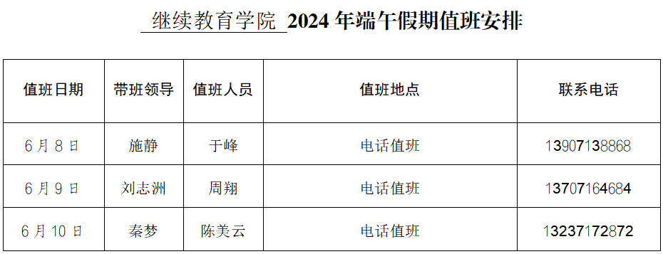 2024年端午假期值班安排