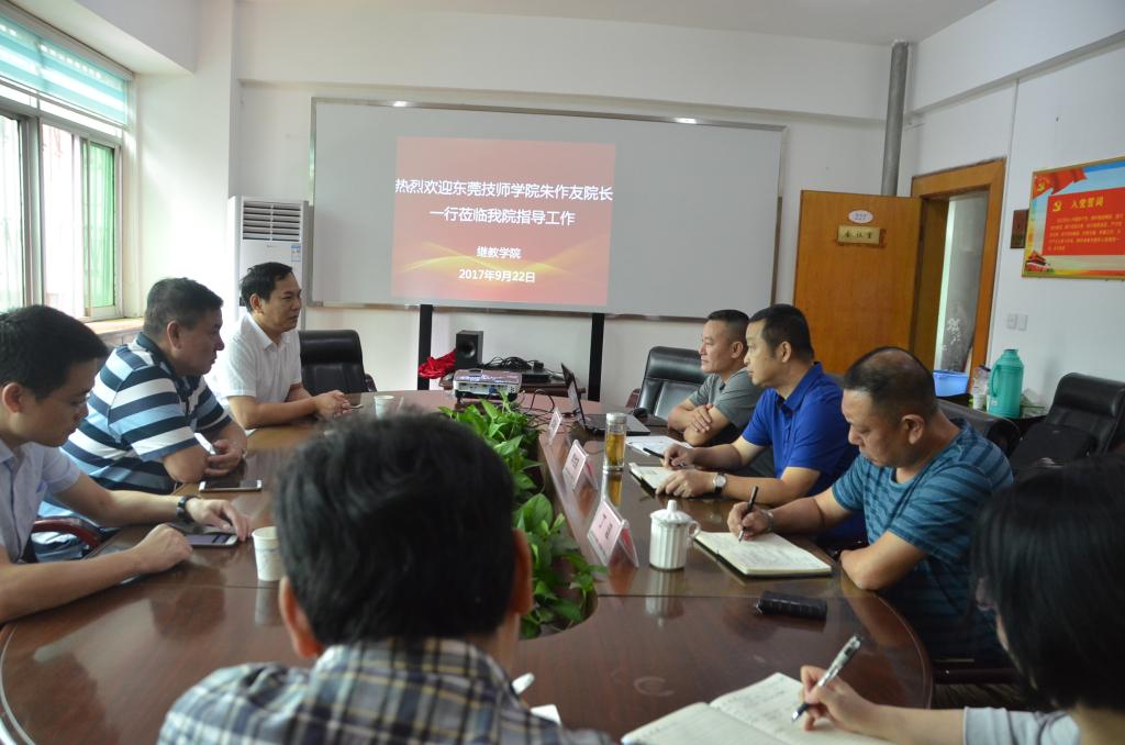 经理李世宗首先对朱作友经理一行表示热烈欢迎!并对东莞技师公司良好的发展势头表示衷心的祝贺!同时详细介绍了公司的基本情况和公司近几年在成教、自考、培训等方面开展的工作。李世宗表示,本次交流是双方的一次深度交流,并在员工的培养、实习实训等方面提出了进一步合作的具体设想。