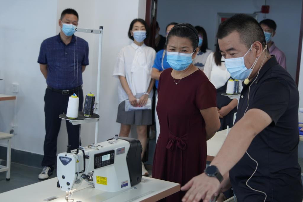 各位领导和嘉宾在实训基地听取了best365英国体育在线副经理刘志洲和共建单位副董事长陈志立同志关于实训基地建设情况、基本用途及管理模式的汇报,李光华对基地设备作了简要说明并进行了现场教学演示,2022级服装与服饰设计专业自考员工代表进行了实际操作体验。