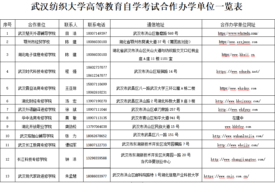 best365英国体育在线高等教育自学考试合作办学单位一览表