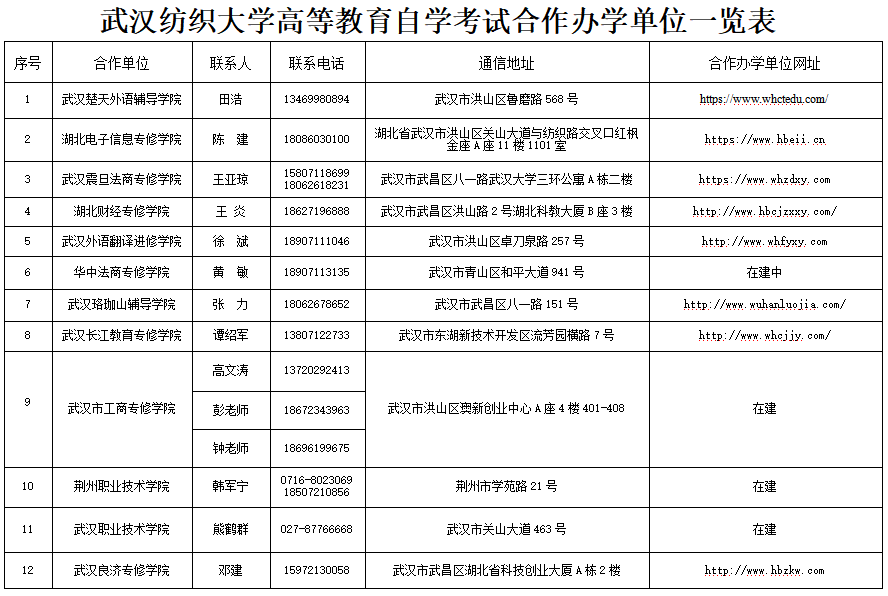best365英国体育在线高等教育自学考试合作办学单位一览表