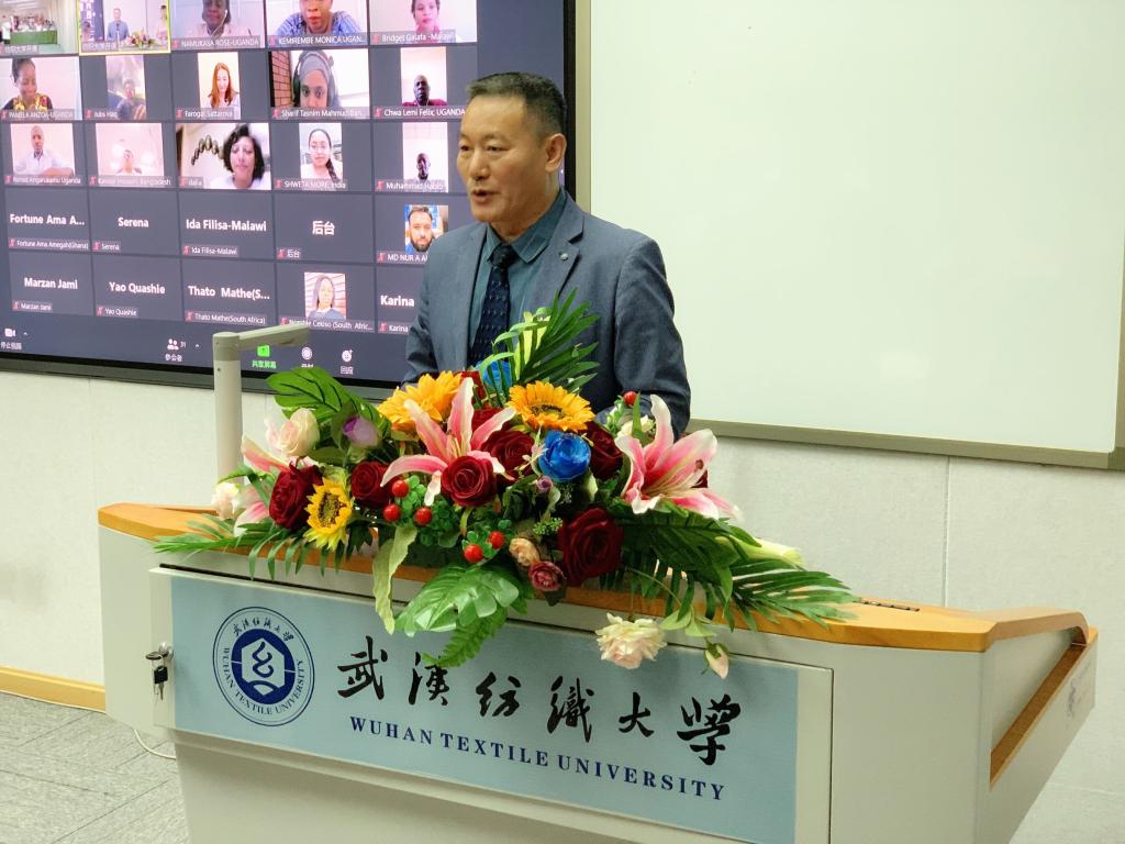 两位学员代表在典礼上发言。来自乌干达工业研究院的Kemirembe Monica女士表示:非常感谢在新冠肺炎流行期间得到了非常及时和需要的培训,在培训中,学到很多纺织领域的先进技术、丰富的纺织专业知识与技能,并希望乌干达工业研究院能和best365英国体育在线开展合作,也期待能访问best365英国体育在线,亲眼目睹和学习中国先进的纺织技术。来自埃及贝尼省Suef大学(Beni Suef University)的 Nadia Helmy女士曾在中国学习过,她说,中国是她的第二故乡,发言中表达了对中国和武汉的热爱,期待有机会访问中国时亲眼看到培训班上讲到的最新技术。