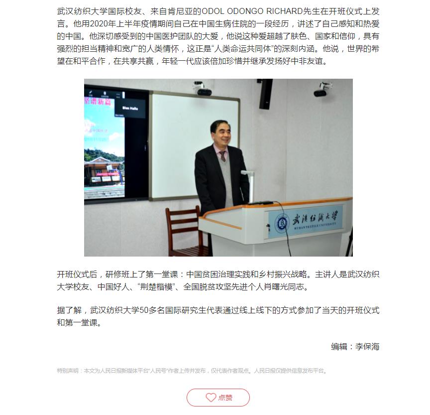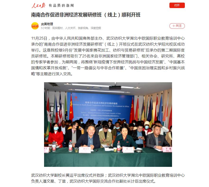 【人民日报】best365英国体育在线南南合作促进非洲经济发展研修班(线上)顺利开班