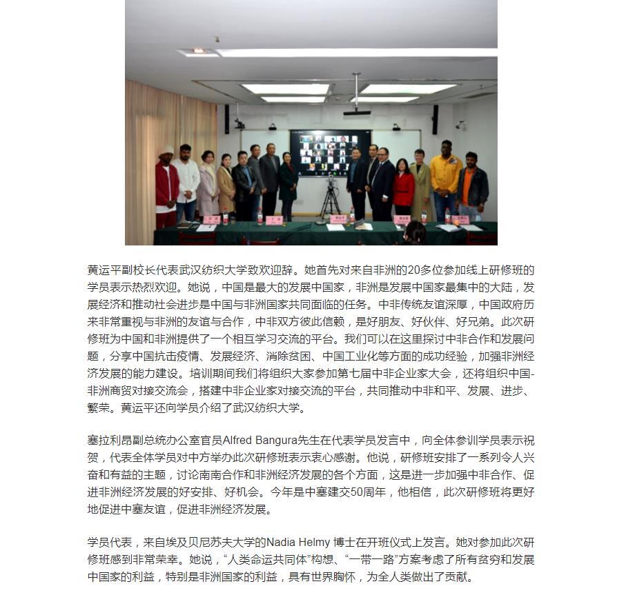 【江夏电视台】“南南合作促进非洲经济发展研修班(线上)”开班仪式的报道