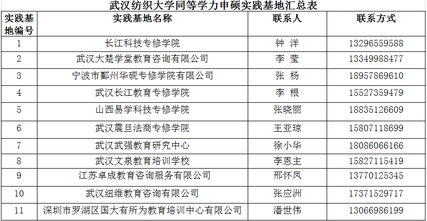 best365英国体育在线同等学力申硕实践基地汇总表